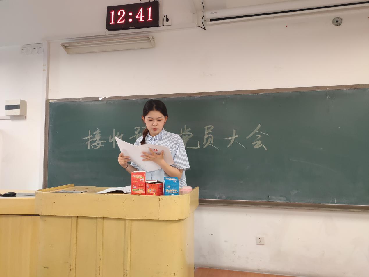 各位党员在王硕同学宣读入党志愿后针对是否同意接收两位同学为预备党员进行表决,投票结果为全票通过,会议决定同意接收王硕为预备党员。