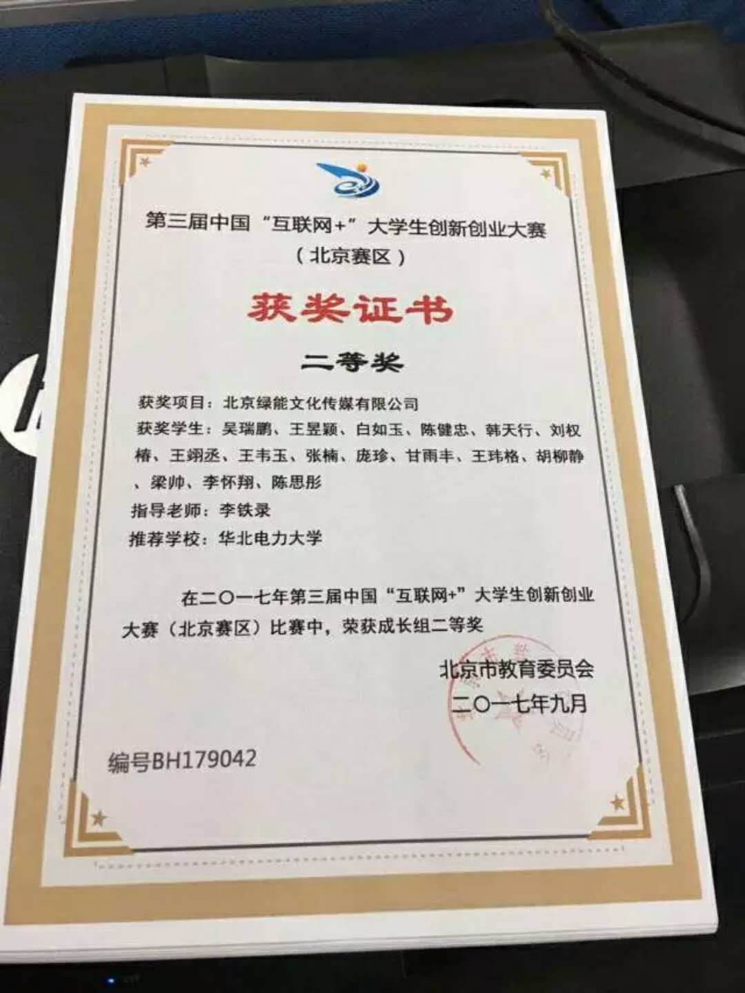 在下半学期与“我i电力”的团队一起参加第三届“互联网+”全国大学生创新创业大赛最后获得校一等奖,北京市二等奖;这样的成果是团队的大家一起努力得到的,进入“我i电力”这个团队我也感觉十分幸运,在前期的采写过程中接触到了许多值得学习的榜样,接触到很多自己所不了解的知识从而对自己有了很大意义上的提高。