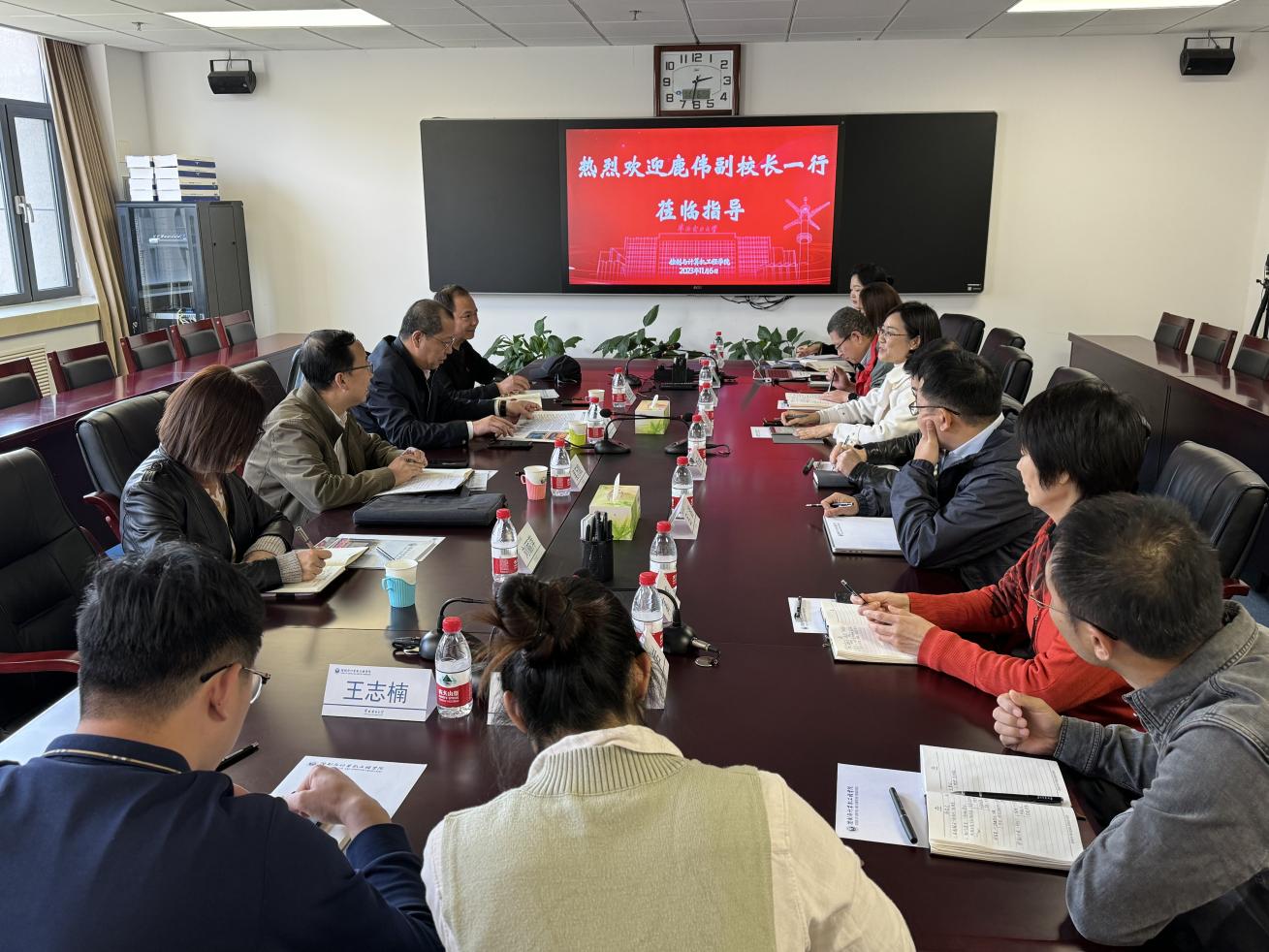 11月6日,校党委常委、副校长鹿伟到av视频 调研指导工作。后勤服务集团党总支书记吴万凯,后勤管理处处长、后勤服务集团总经理张兵仿,后勤服务集团办公室主任刘丽萍,控计学院领导班子成员及教师代表参加工作调研会议。